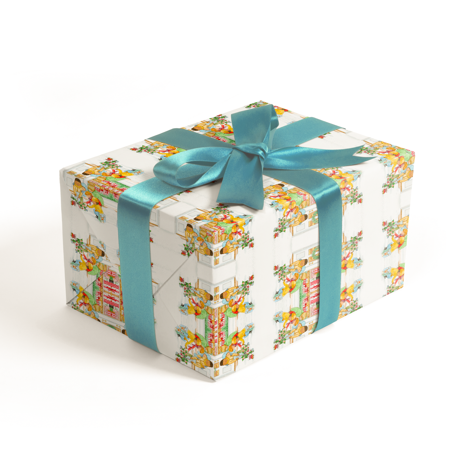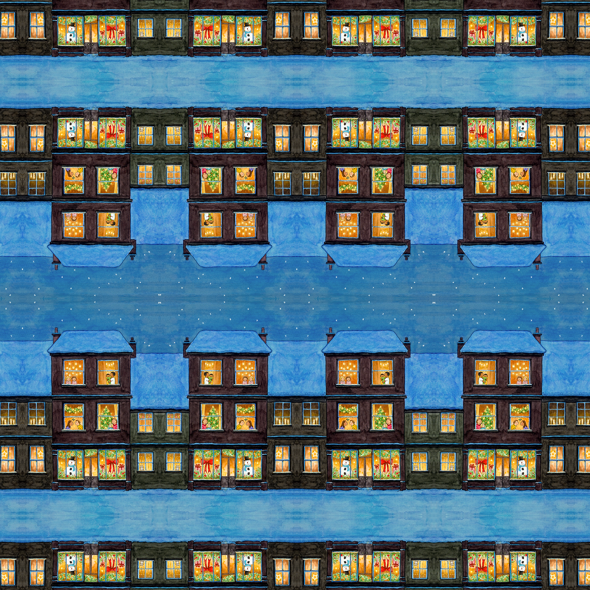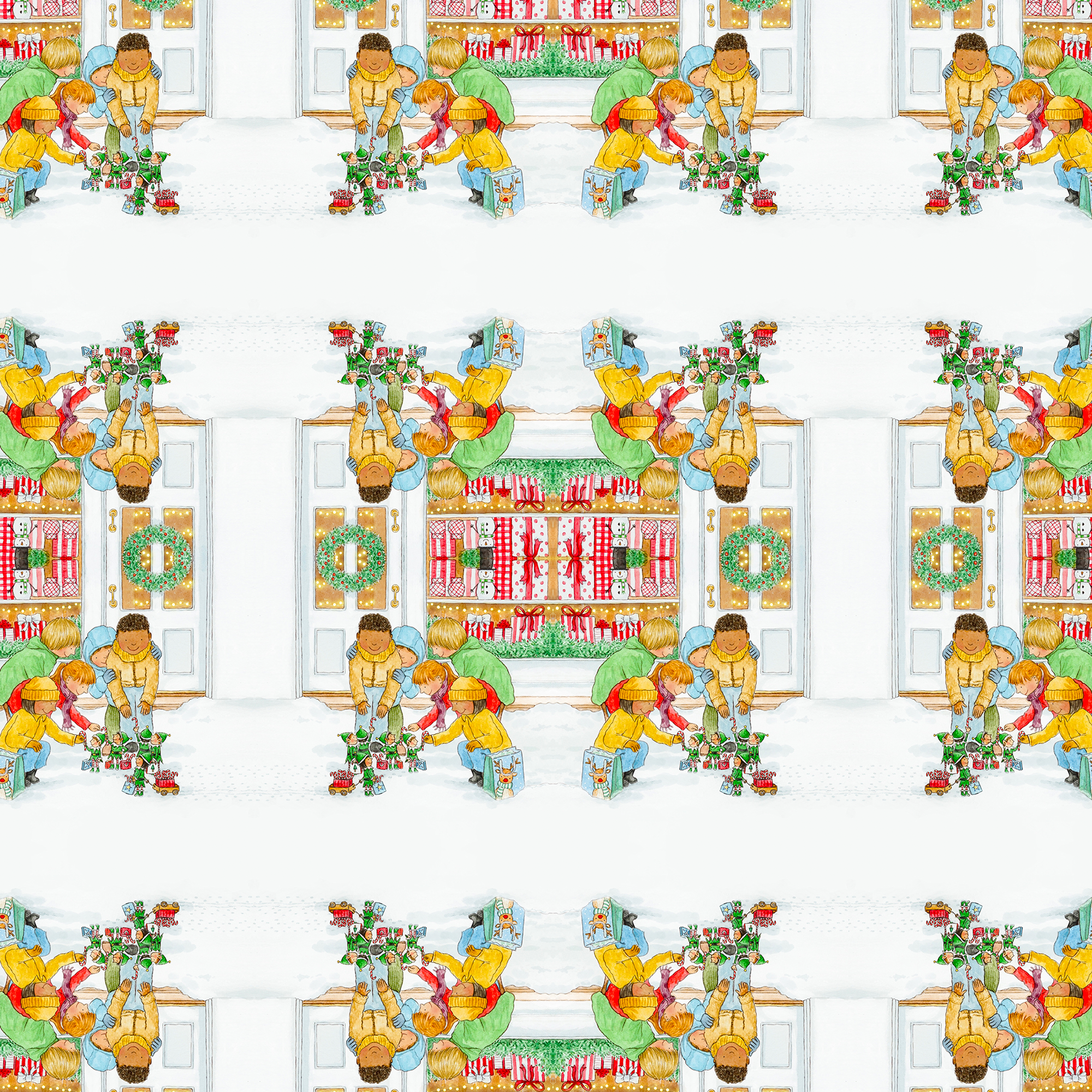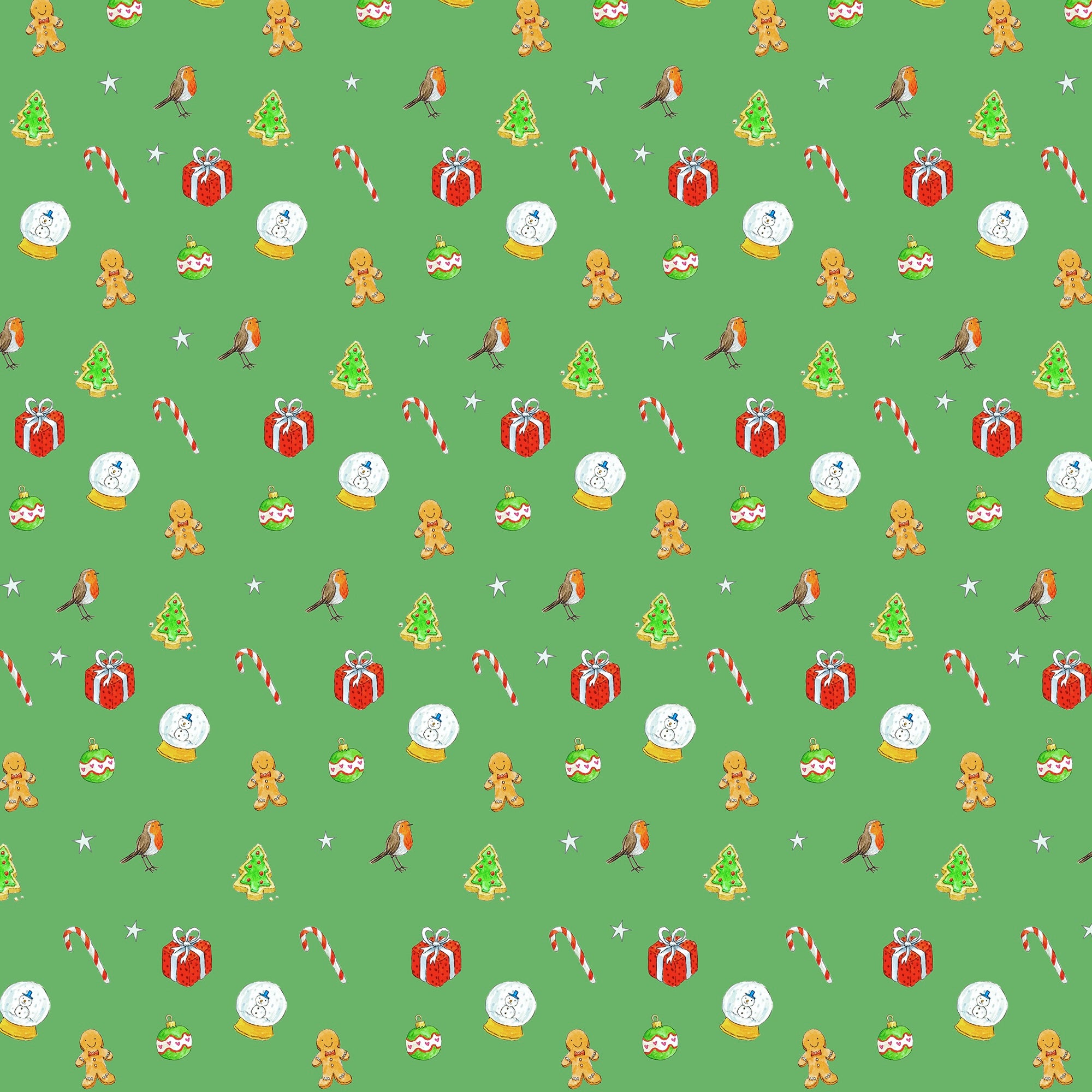 Christmas wrapping paper printed with a selection of Helena's Christmas illustrations.